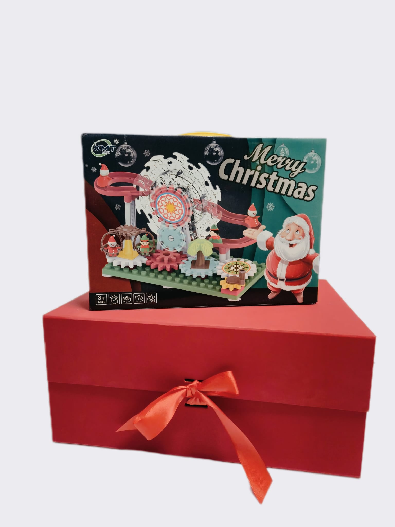 1. Set de Construcție cu Angrenaje "Merry Christmas" (Roată și Moș Crăciun): Un joc de construcție captivant, cu tematică de Crăciun, ce îi învață pe copii despre mecanisme și mișcare. Ei pot asambla o roată funcțională și pot urmări cum Moș Crăciun și prietenii săi se rotesc!
