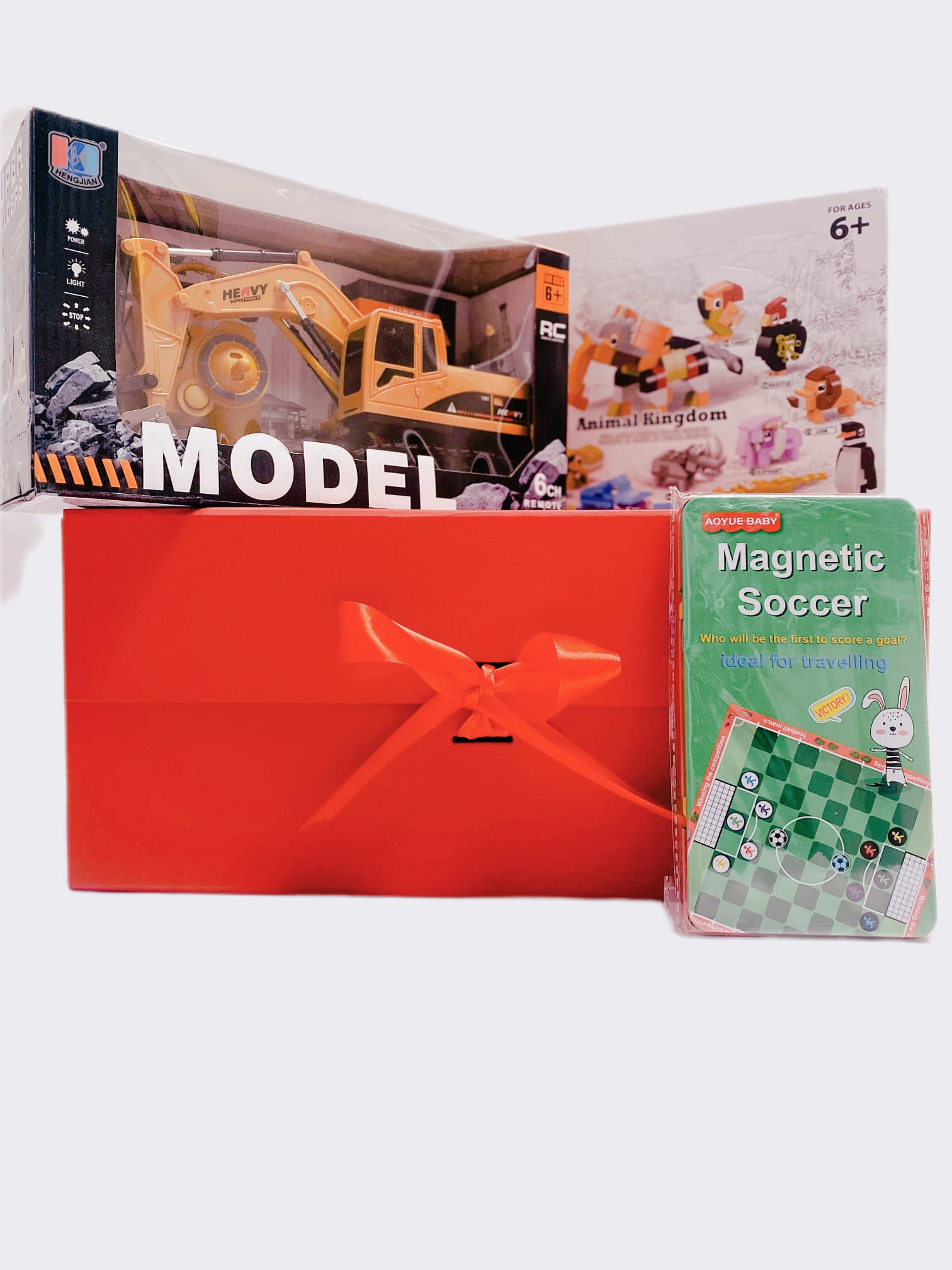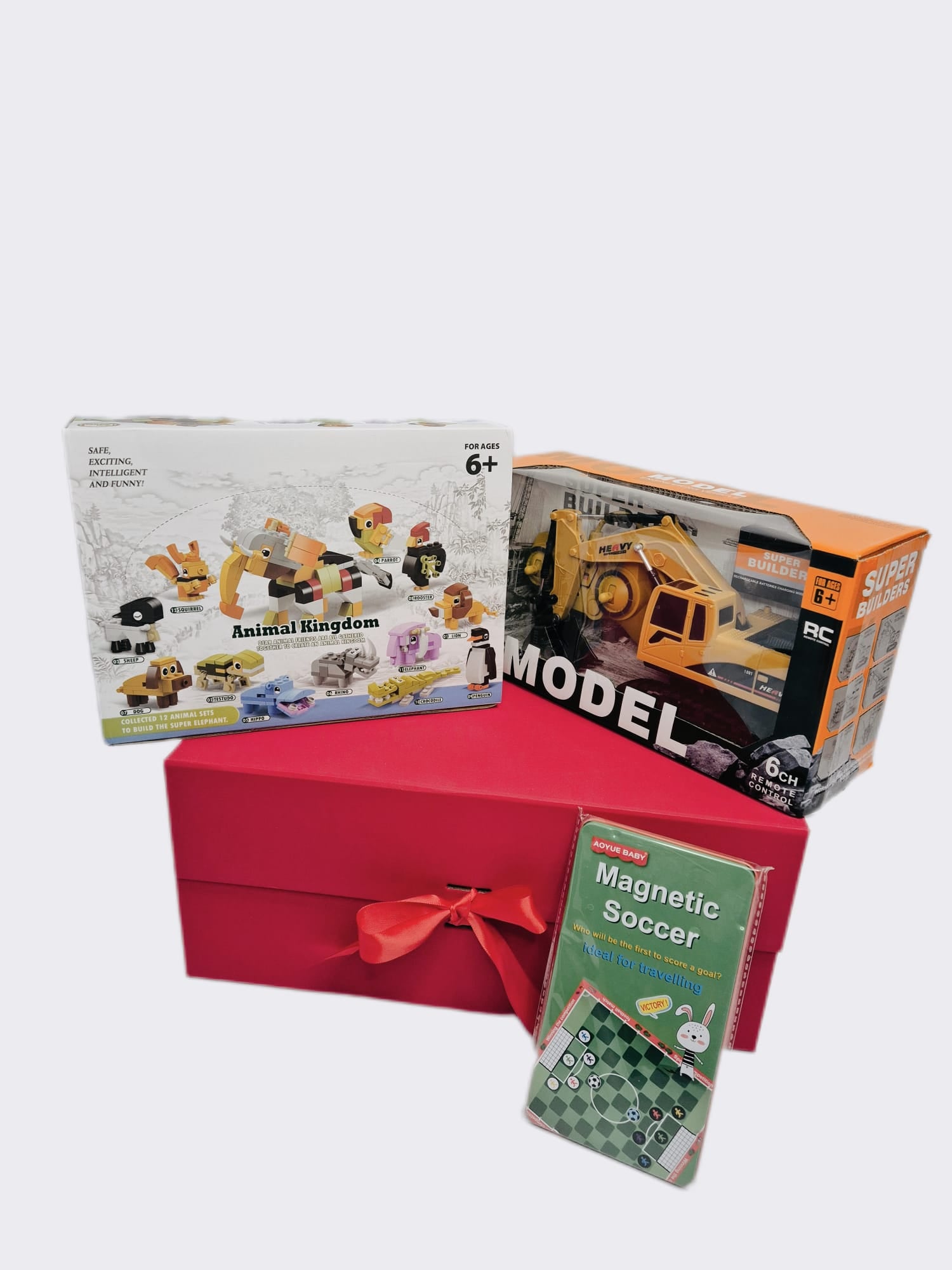 Surprinde un copil de sărbători cu un set complet de jucării distractive și educative, ambalate într-o cutie elegantă roșie cu fundiță, gata de oferit sub brad!