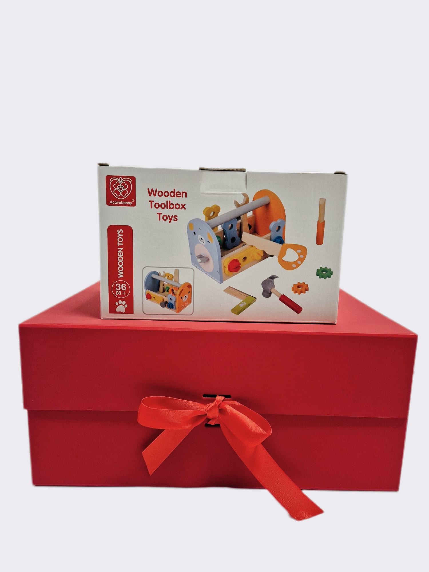 1. Trusă de Unelte din Lemn (Wooden Toolbox Toys): Un set minunat de jucării din lemn care îl transformă pe cel mic într-un adevărat meșter! Include o bancă de lucru și unelte de bază (șurubelniță, cheie), fiind ideal pentru a dezvolta motricitatea fină și coordonarea mână-ochi.