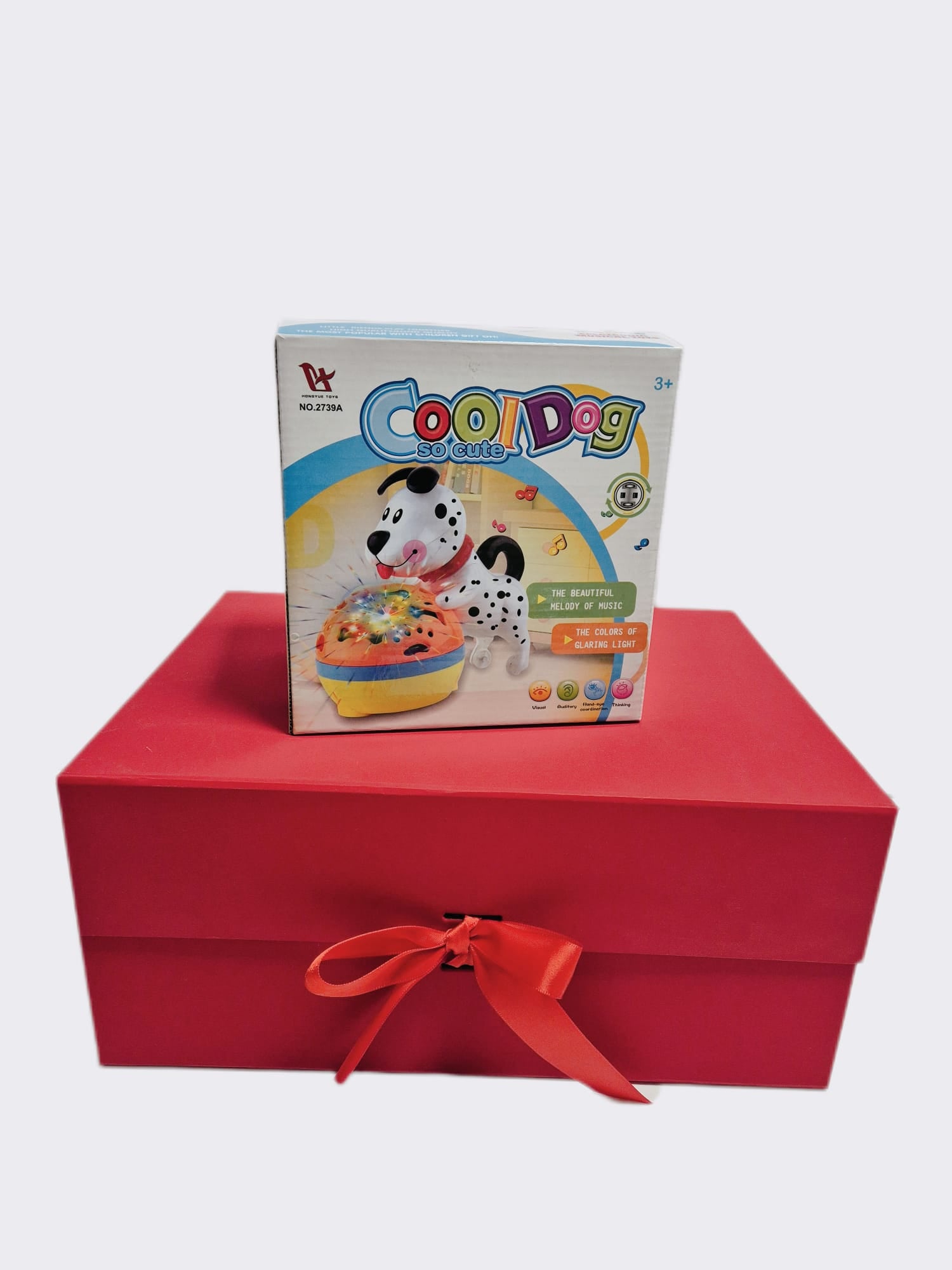 2. Jucărie Interactivă "Cool Dog" (Cățeluș cu Muzică și Lumini): Un prieten vesel care aduce bucurie prin muzică și lumini colorate. This jucărie stimulează simțul auditiv și vizual, fiind ideală pentru explorarea senzorială.