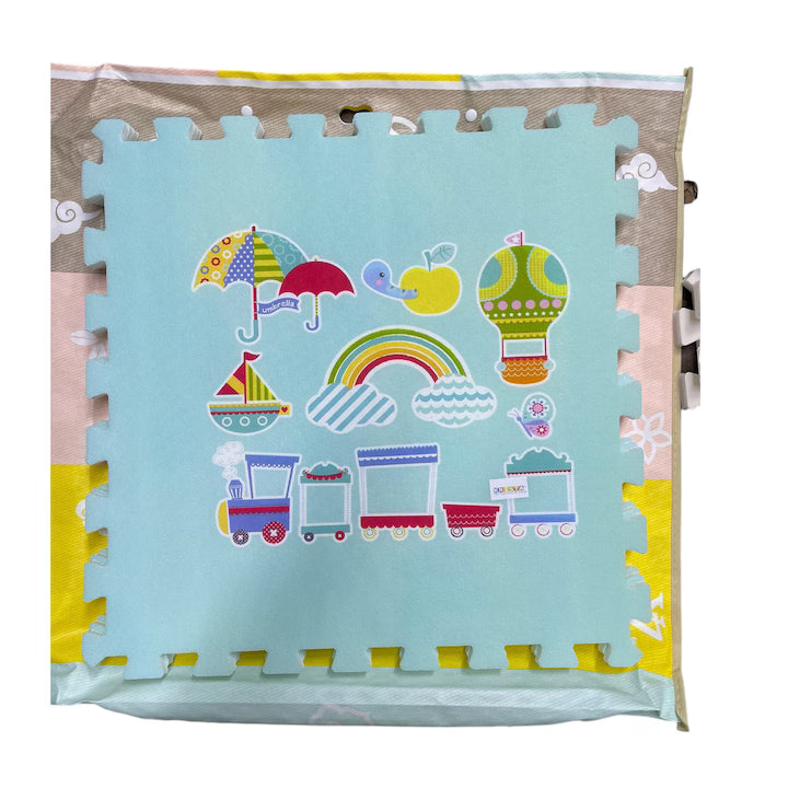 Covorasul poate fi facut in orice directie sau chiar sa faci un cub, avand 6 piese mari, de 60x60 cm fiecare. Fiecare piesa are cate o tematica - cifre, litere, animale etc Confectionat din material moale, sigur, fara substante nocive - spuma buretata EVA, care garanteaza durabilitatea si durata mare de utilizare, incepand de la bebelusi si pana la copii mai mari. Indeplineste standarde europene CE si EN71 pentru siguranta utilizarii. Densitatea mare a spumei are rolul de a absorbi orice cazatura, cat si de a izola termica sau poate rece si tare. Suprafata covorasului este impermeabila si poate fi curatata foarte usor, cu o carpa umeda (Nu folositi detergenti!). Suprafata striata - antialunecare Covorasul vine ambalat intr-o husa cu manere, se strange compact, fiind foarte usor de transportat oriunde - in parc, la picnic, la plaja etc. Dimensiuni desfacut: 180 x 120 x 1,5 cm Varsta recomandata: de la nastere ATENTIE! Nu utilizați obiecte ascutite și nu puneți obiecte de mobilier sau scaunele pe covoare, deoarece suprafata moale se poate rupe! Tineti departe de surse de caldura.