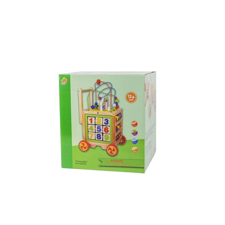 Antepremergator din lemn de tip cub sau centru multifunctional cu 6 activitati distractive si educative pentru copilul tau!