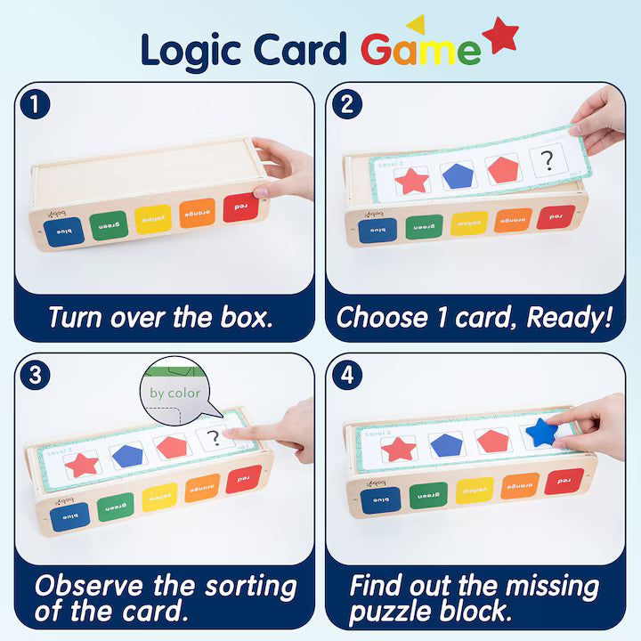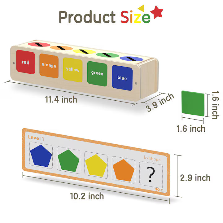 [Cutie de jucarii creative] Jucaria noastra de sortare a formelor si culorilor din lemn are diferite niveluri de dificultate si varste diferite de joc, ceea ce este foarte atractiv pentru copii. Este o cutie de joc creativa de sortare si sortare care se concentreaza pe coordonarea ochi-mana, pe imaginatie si pe abilitatile de sortare.