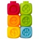 Set 6 cuburi cuplabile, cu cifre, pentru dentitie sau baita Set 6 Cuburi din material plastic moale, de calitate superioara pentru bebelusi, de dimensiuni mari, cu fatete inscriptionate cu imagini dragalase, colorate - cifre, animalute, texturi si forme diferite. Cand bebe le strange acestea se muleaza, iar el poate invata culorile, diverse texturi si imagini uzuale, deoarece fiecare fateta a cubului sunt imagini cu animale, fructe sau alte imagini uzuale, preferate de cei mici. Cuburile pot fi folosite si pentru ca bebe sa le suprapuna si sa formeze constructii, pe una dintre laturi avand o prelungire, care intra in laterala unui alt cub. Setul contine 6 cuburi de diferite culori, pe care bebe le poate folosi si la baita, dar sunt ideale si pentru ameliorarea senzatiei de durere sau mancarime datorate cresterii dintisorilor, acestea fiind moi si putand fi igienizate. Unele cuburi au chitaitori, distractia devenind si mai mare. Pui Latura 4,5 cm AVERTISMENT! A se utiliza doar sub atenta supraveghere a unui adult.