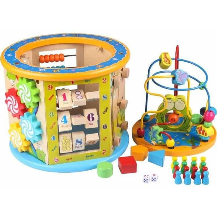 Centru activități din lemn educativ 8 in 1, un centru de joaca pentru copii cu varsta cuprinsa intre 1 si 6 ani.