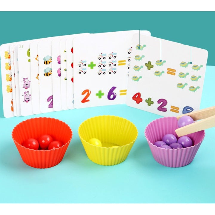 Setul include 30 de catonase colorate si distractive, un cu numere de la 1 la 10 pentru potrivire, betis pot suporta, clesti, o tava de sortare si multe bile.