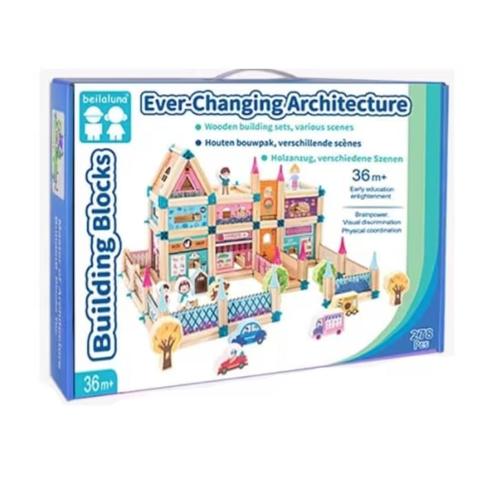 Setul de Constructie din Lemn Natural si Plastic pentru Copii, cu 278 de piese, este o jucarie educativa si inovatoare, ideala pentru stimularea dezvoltarii cognitive si motorii a copiilor. Acest set nu numai ca ofera o experienta de joc plina de distractie, dar este un instrument valoros pentru invatare si explora creativa.