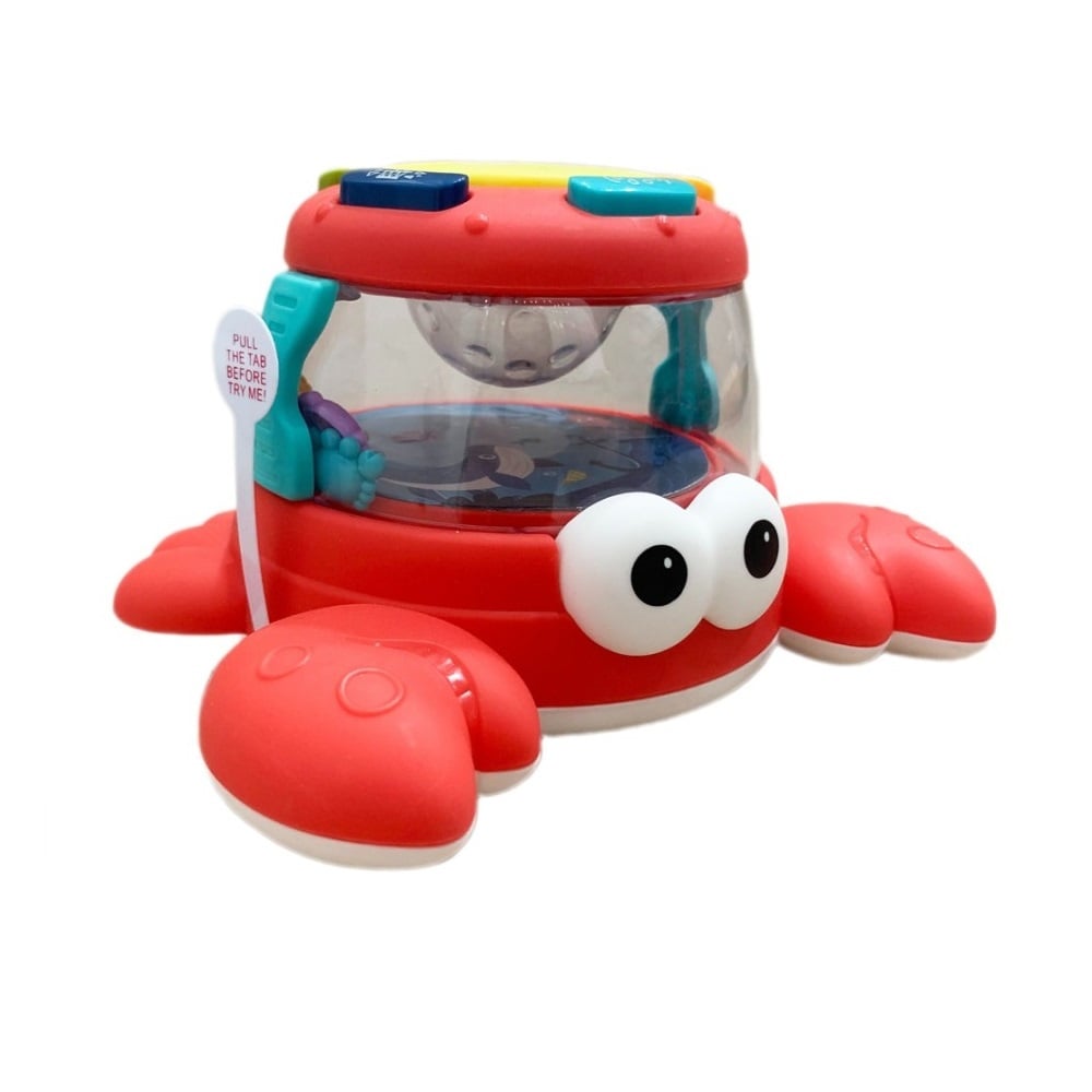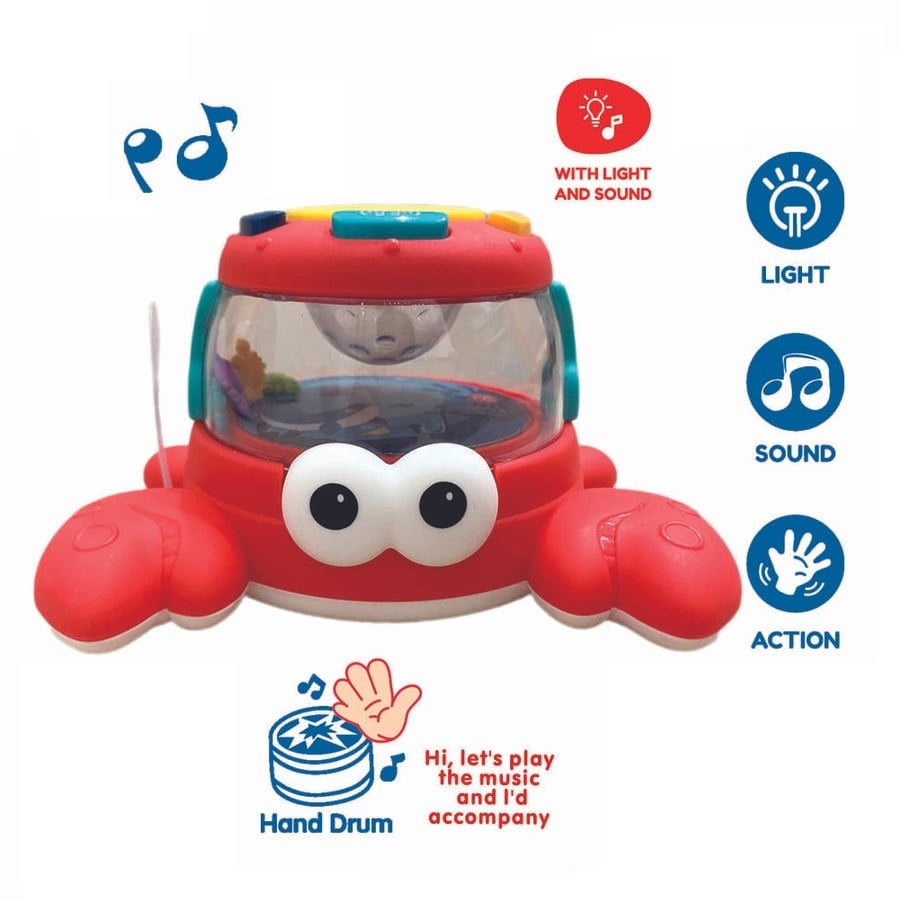 Jucarie interactiva in forma de crab, cu sunete, lumini si butoane, rosu