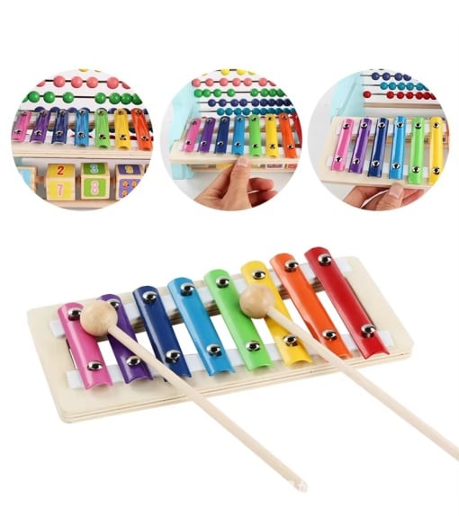 Numaratoare, Xilofon si Cuburi de Invatare, din Lemn, pentru Copii 2 ani+, 21x19x22cm, Multicolor