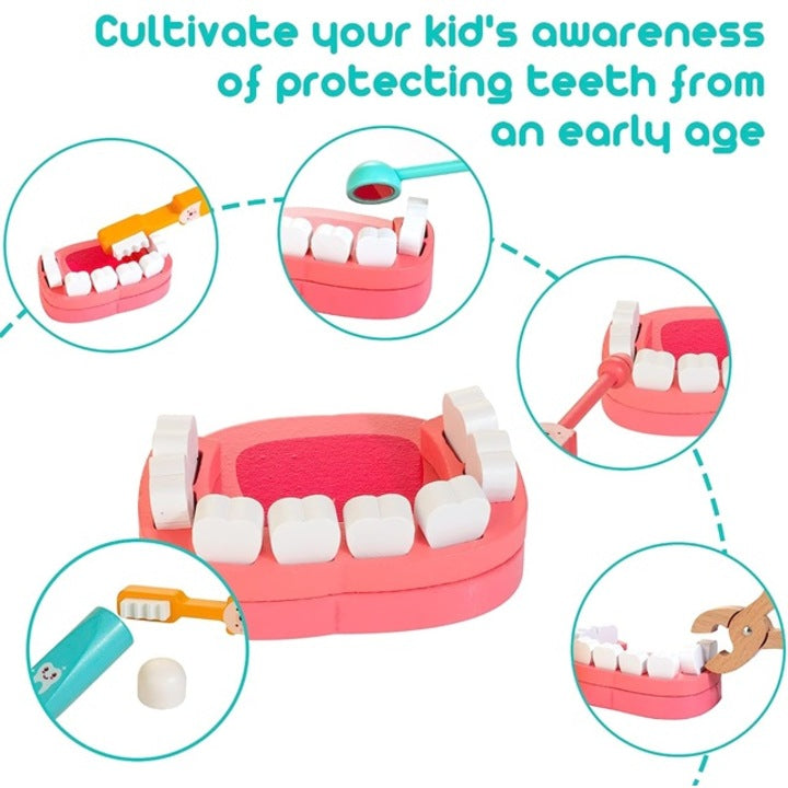 Echipata cu instrumente realiste concepute pentru maini mici si imaginatie mare, trusa include un stetoscop cu amplificator pentru a asculta sunetele inimii si ale respiratiei, o seringa jucausa pentru a oferi tratament imaginate, un set de dinti si un cleste pentru a invata despre igiena dentara si pentru a juca rolul de dentist, oglinda si pentru a include o serie de examinari orale precise de paste. periuta de dinti pentru a promova ingrijirea dentara sanatoasa inca de la o varsta frageda.