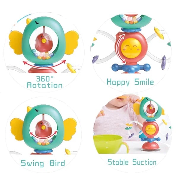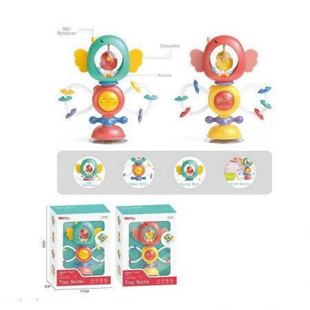 Jucarie atasabila cu activitati si ventuza Ofera bebelusului tau o experienta de joaca interactiva si educativa cu acest set versatil, special conceput pentru a stimula dezvoltarea senzoriala si motorie a celor mici, oferindu-le ore intregi de distractie. Cu ajutorul ventuzei se poate fixa multiple suprafete precum: masa, scaun inalt, cada, codea, geam etc; Sunete zornaitoare: jucaria emite sunete placute, stimuland auzul si curiozitatea copilului; Ventuze puternice: Permite atasarea pe diverse suprafete netede, oferind stabilitate in timpul jocului; Texturi si culori variate: Ajuta la stimularea vizuala si tactila a bebelusului; Caracteristici: Material: plastic durabil si silicon alimentar non-toxic, fara BPA; Dimensiuni: 20 x 16 cm; Culoare: multicolor; Varsta recomandată: 1+ an